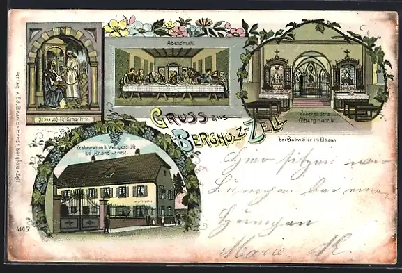 Lithographie Bergholz-Zell bei Gebweiler, Restaurant von Ed. Brand-Ernst, Inneres der Ölberg-Kapelle