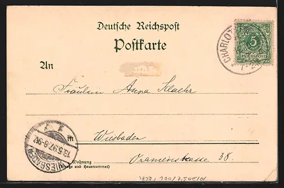 gelaufen 1897, Klebereste Ecken li. und re., Stempelspur, guter Zustand