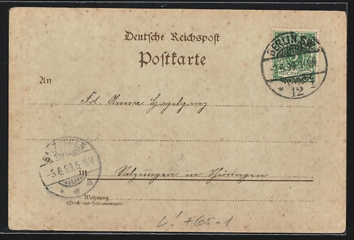gelaufen 1899, Eckknicke re. und li. oben, guter Zustand