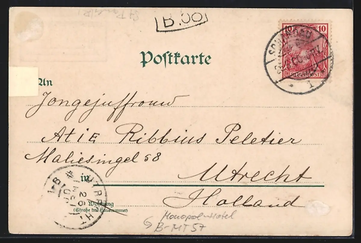 gelaufen 1900, rückseitig Klebe- und Papierreste, guter Zustand