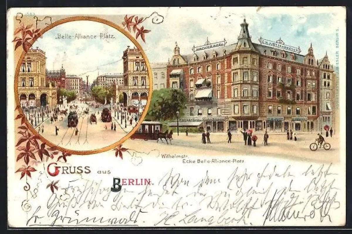 Lithographie Berlin, Belle-Alliance-Platz, Wilhelmstr., Ecke Belle-Alliance-Platz