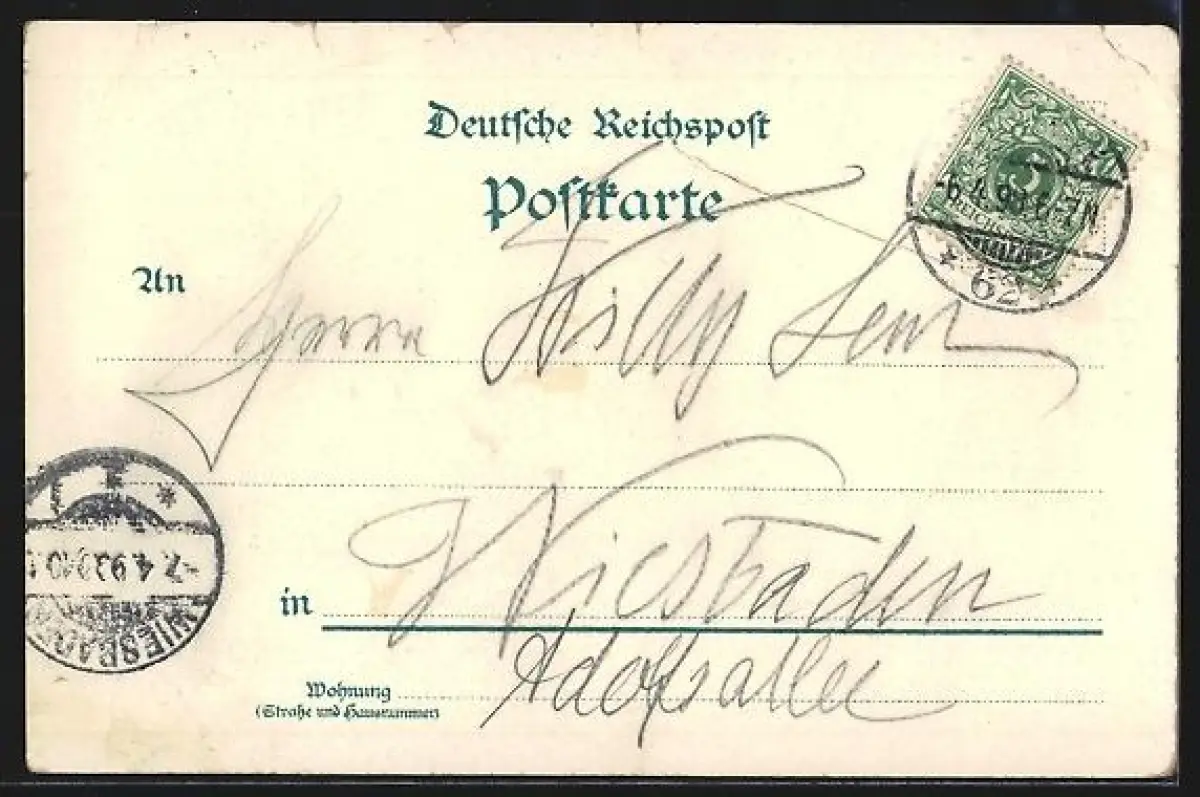gelaufen 1898, Eckknick oben links, Bugspur oben links, guter Zustand