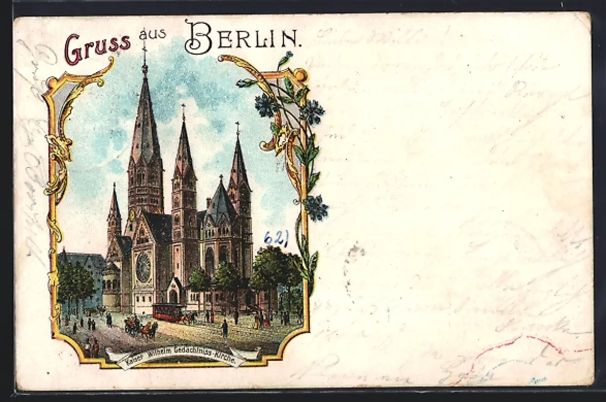 Lithographie Berlin-Charlottenburg, Blick auf Kaiser-Wilhelm-Gedächniskirche
