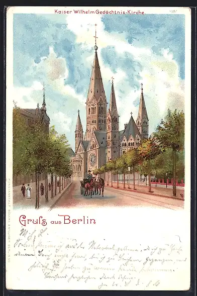 Lithographie Berlin-Charlottenburg, Die Kaiser-Wilhelm Gedächtniskirche