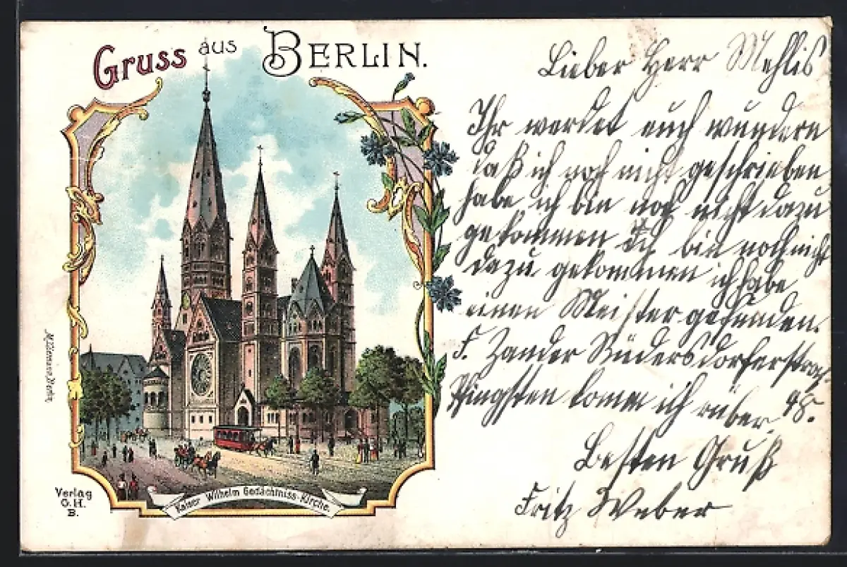 Lithographie Berlin-Charlottenburg, Kaiser Wilhelm-Gedächtnis-Kirche