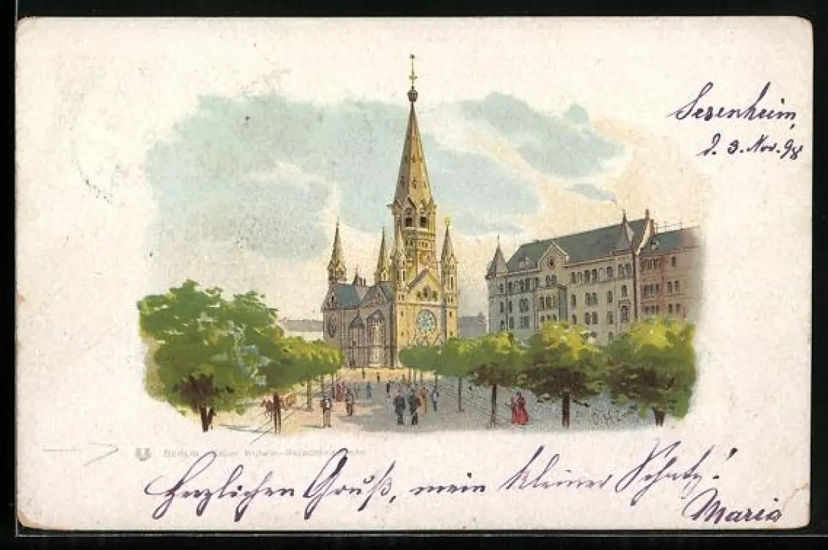 Lithographie Berlin-Charlottenburg, Kaiser Wilhelm Gedächtniskirche