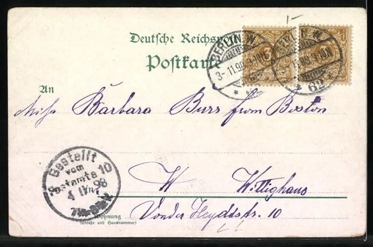 gelaufen 1898, Eckknick re. unten, guter Zustand