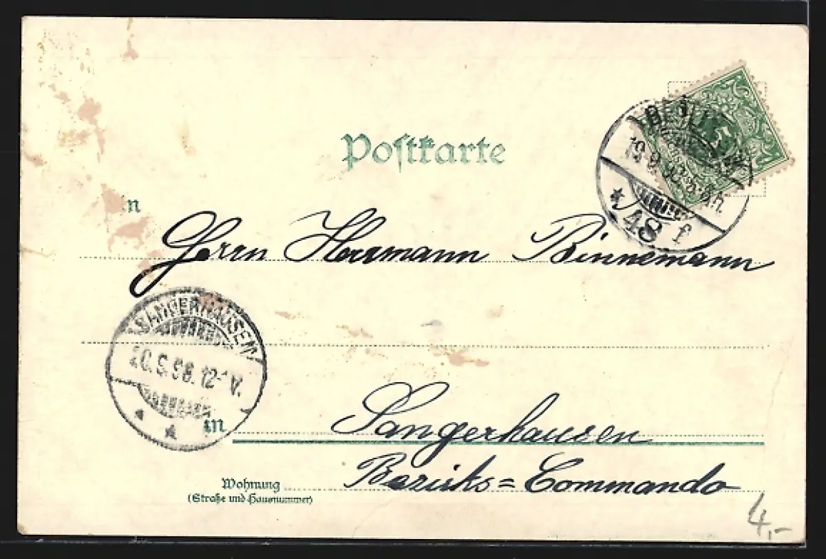 gelaufen 1898, rückseitig Oberflächenschaden, minimale Einrisse re. oben u. mittig, Bugspur li. mittig, guter Zustand