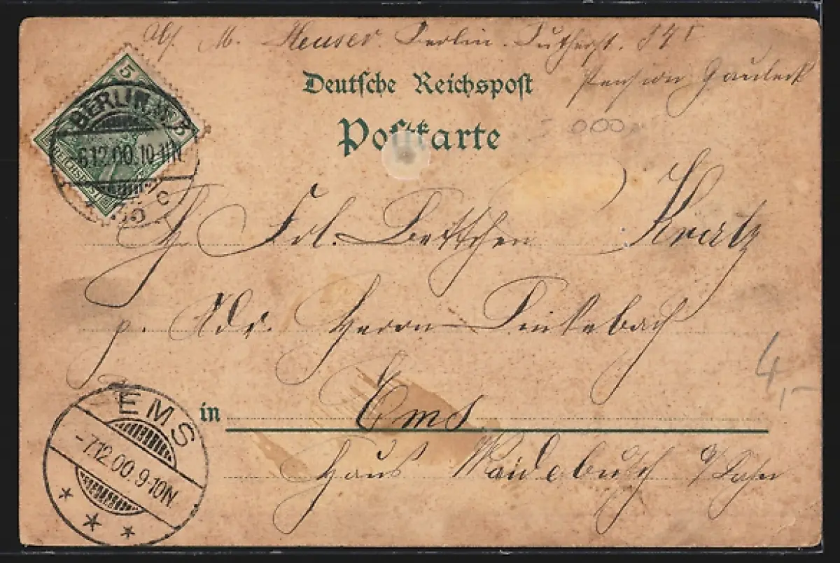 gelaufen 1900, rückseitig Klebe- und Papierreste, guter Zustand