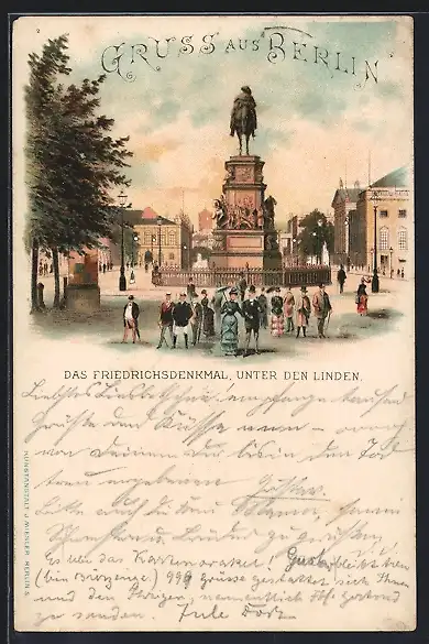 Lithographie Berlin, Friedrichsdenkmal Unter den Linden