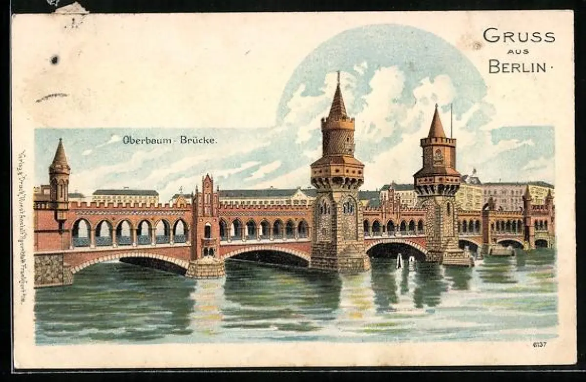 Lithographie Berlin-Friedrichshain, Oberbaum-Brücke