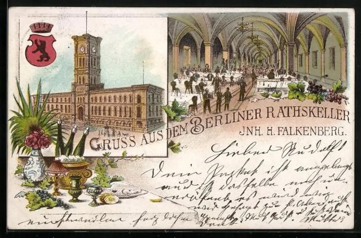 Lithographie Berlin, Gasthaus Rathskeller und Rathaus, Königstrasse