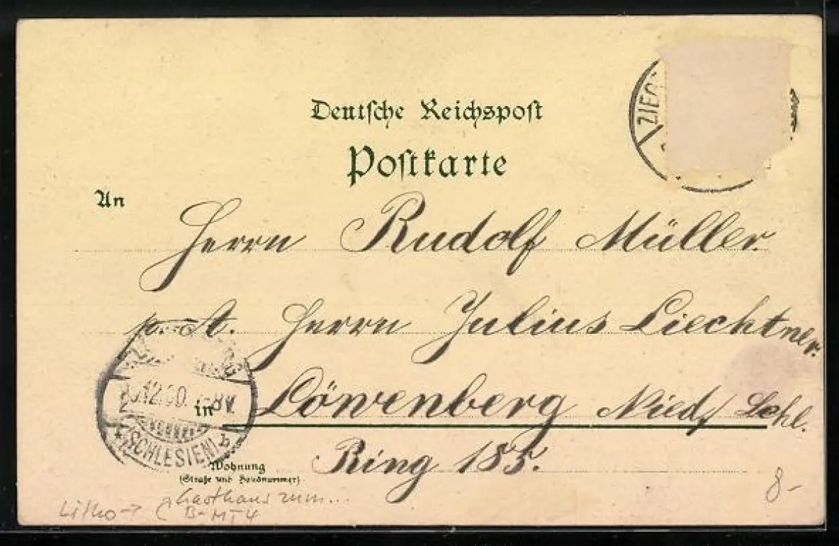 gelaufen 1900, Briefmarke entfernt, rückseitig Oberflächenschaden, guter Zustand