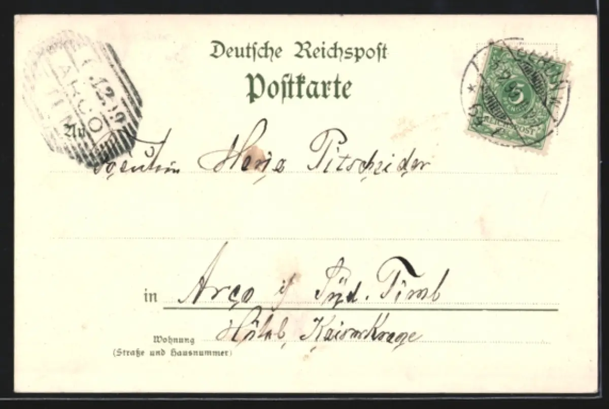 gelaufen 1899, vorderseitig Klebe- und Papierreste, Albumspuren, guter Zustand