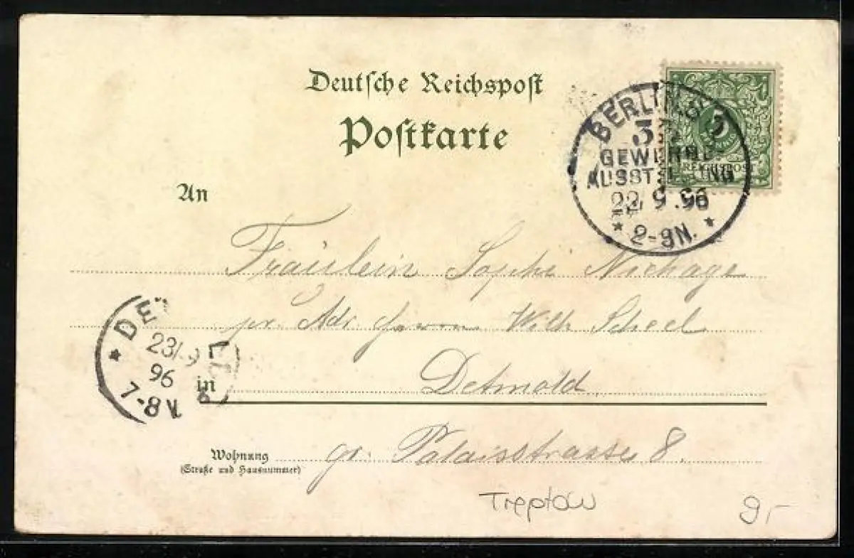 Lithographie Berlin, Gewerbe-Ausstellung 1896, Geb. f. Nahrungs- u. Genussmittel