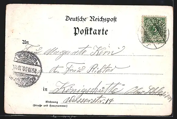 gelaufen 1899, Eckknick re. unten, guter Zustand