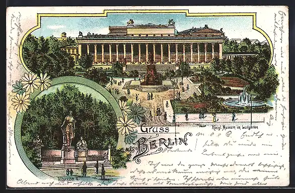 Lithographie Berlin, Köngl. Museum im Lustgarten, Denkmal