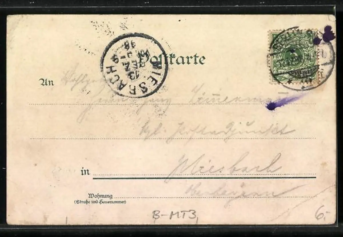 gelaufen 1896, Eckknick li. unten, guter Zustand