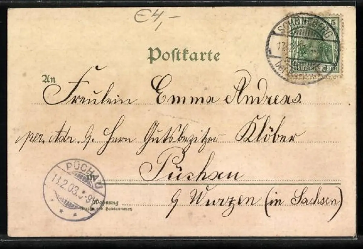 gelaufen 1903, Eckknick re. unten, guter Zustand