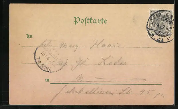 gelaufen 1902, Eckknick li. oben, guter Zustand