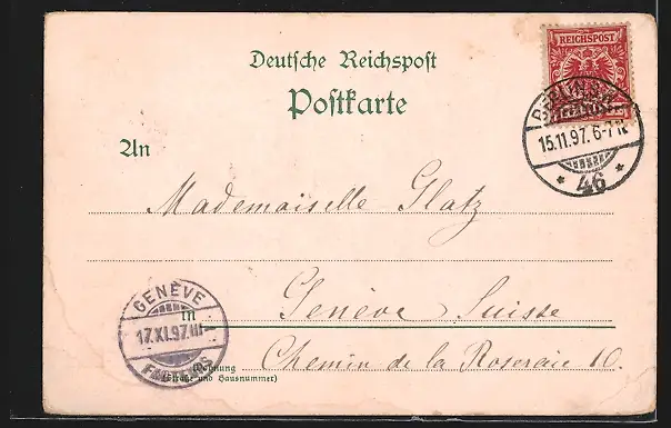 gelaufen 1897, Eckknicke unten, guter Zustand