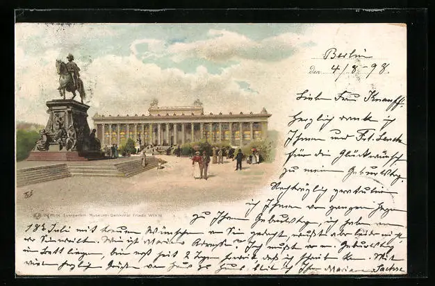 Lithographie Berlin, Partie am Reiterdenkmal Kaiser Wilhelm