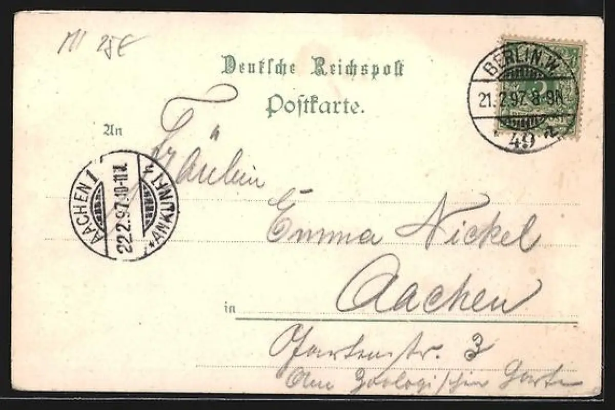 gelaufen 1897, Eckknick rechts oben, guter Zustand
