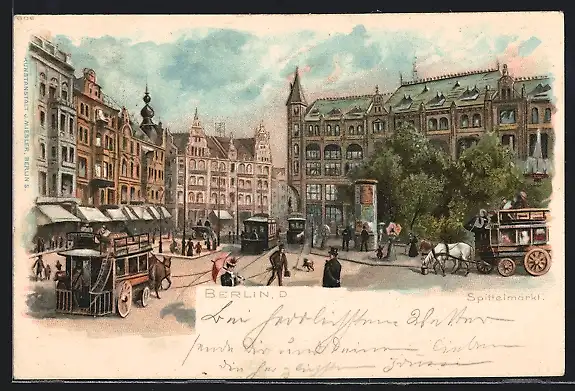 Lithographie Berlin, Spittelmarkt, Strassenbahn