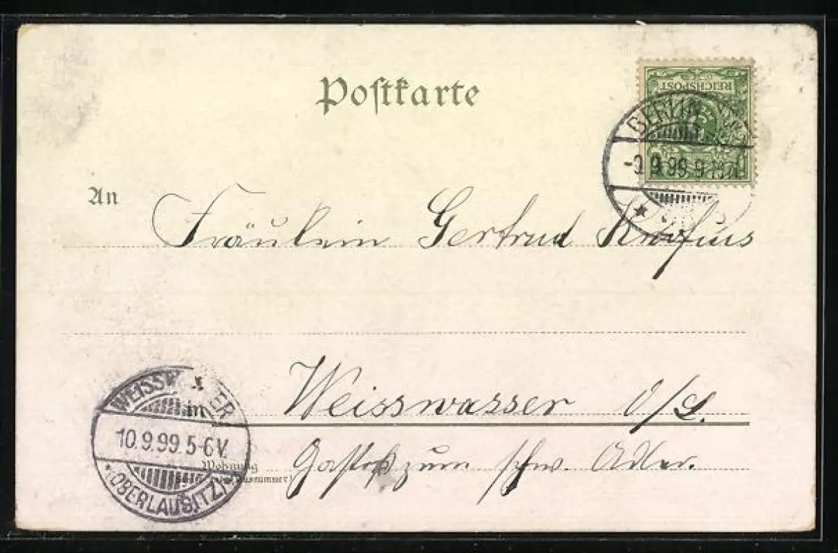 gelaufen 1899, Eckknick oben rechts, guter Zustand