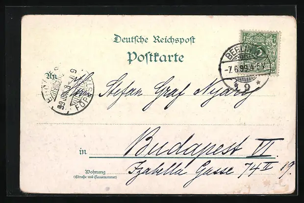 gelaufen 1899, rückseitig Klebe- und Papierreste, rückseitig Oberflächenschaden, guter Zustand