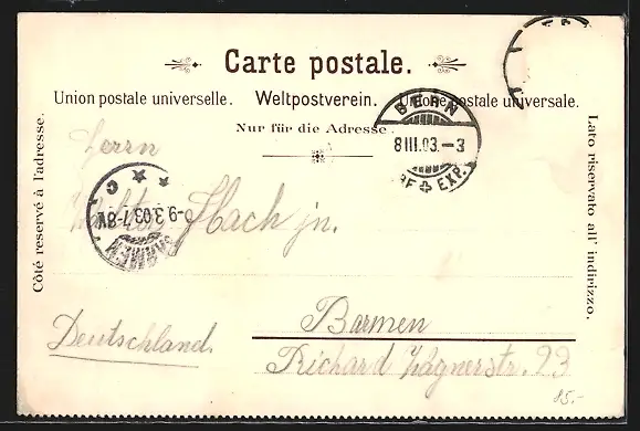 gelaufen 1903, Briefmarke entfernt, guter Zustand