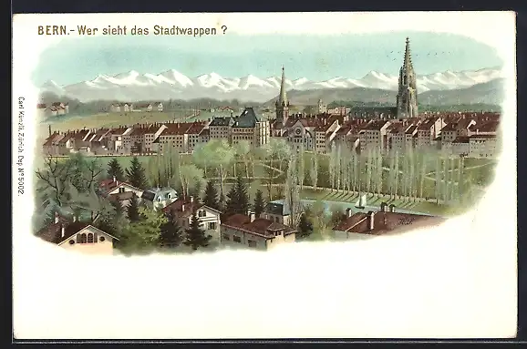 Lithographie Bern, Ortsansicht mit Stadtwappen