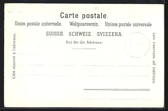 Personenbezogene Daten auf der Rückseite der Karte wurden durch blauen Textmarker unkenntlich gemacht. Die blauen Stellen sind auf die Vorderseite durchgeweicht und wirken sich negativ auf das Postkartenfoto aus