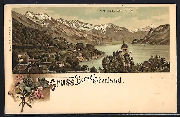 Lithographie Bern, Panorama vom Ort mit Blick auf den Brienzer See