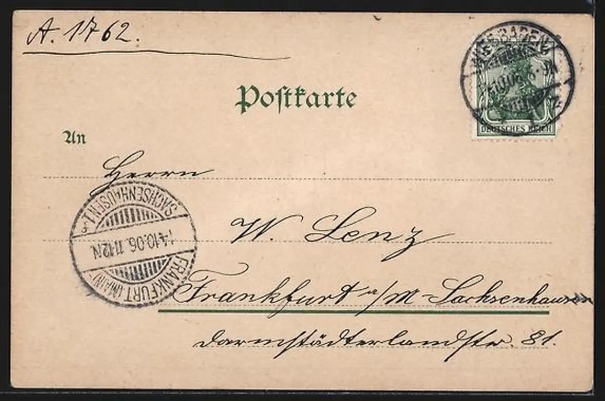 gelaufen 1906, Stempelspur, Eckknick links oben, guter Zustand