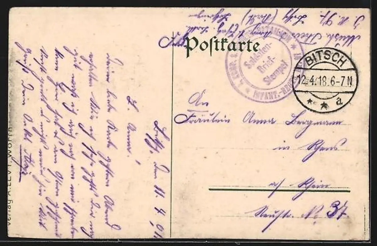 gelaufen 1918, Eckknick unten links, guter Zustand