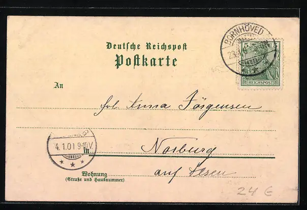 gelaufen 1901, Eckknicke li., minimaler Einriss li. unten, guter Zustand