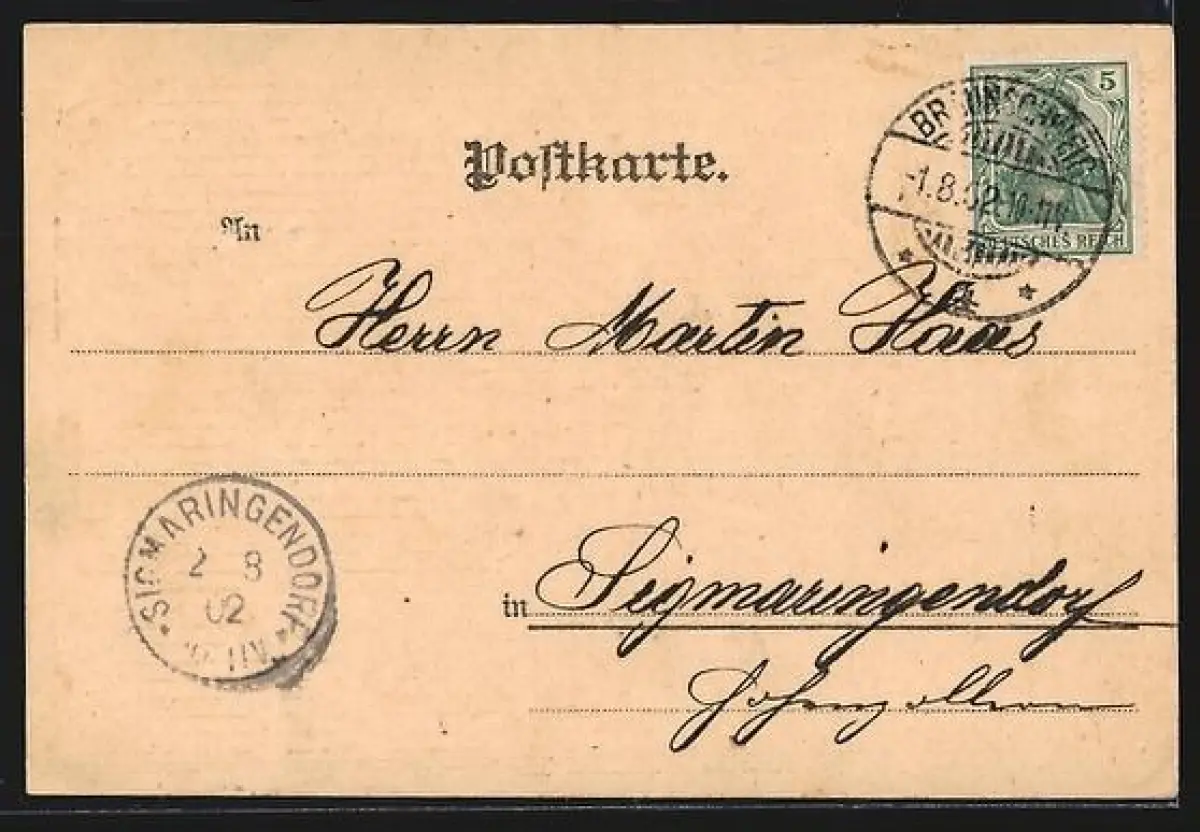 gelaufen 1902, Eckknick re. oben, guter Zustand