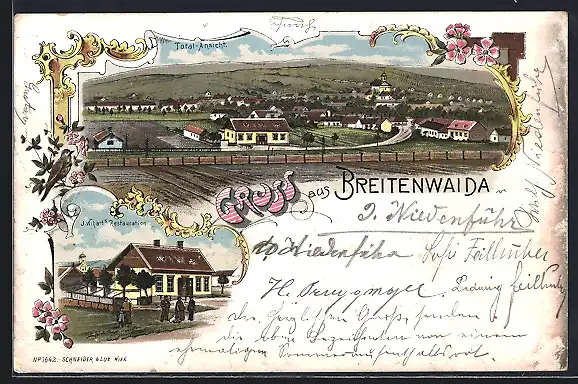 Lithographie Breitenwaida, J. Wihart`s Restaurant, Totalansicht