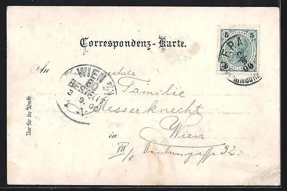 gelaufen 1900, Eckknick li. unten, guter Zustand