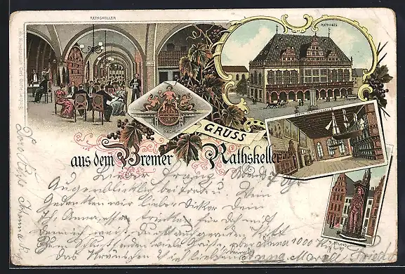 Lithographie Bremen, Gasthaus Rathskeller, Obere Rathaushalle, Roland