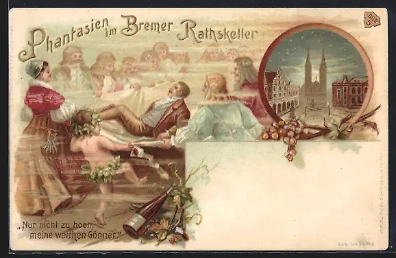 Lithographie Bremen, Restaurant Ratskeller, junger Mann im Rausch