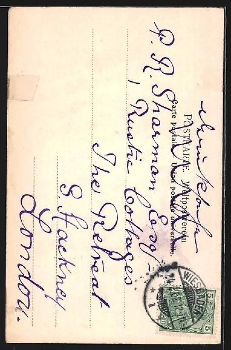 gelaufen 1902, rückseitig Klebe- und Papierreste, guter Zustand