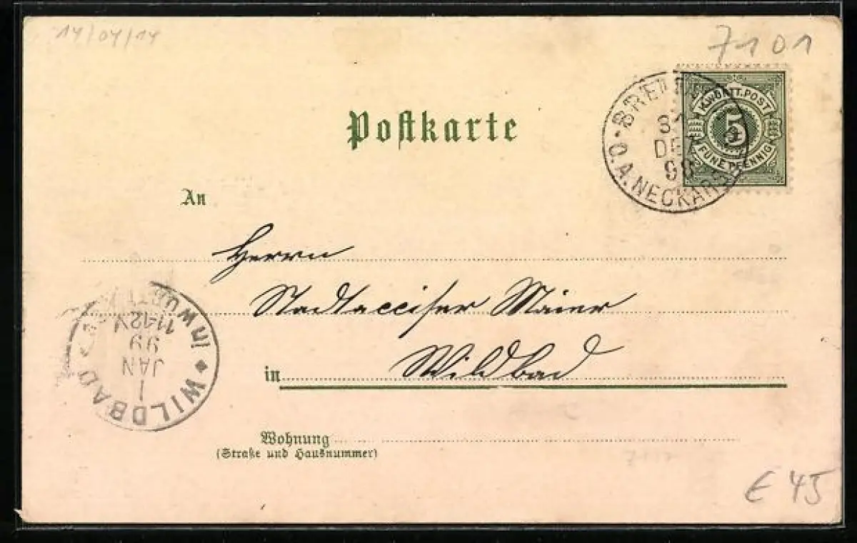 gelaufen 1899, Eckknick rechts oben und rechts unten, guter Zustand