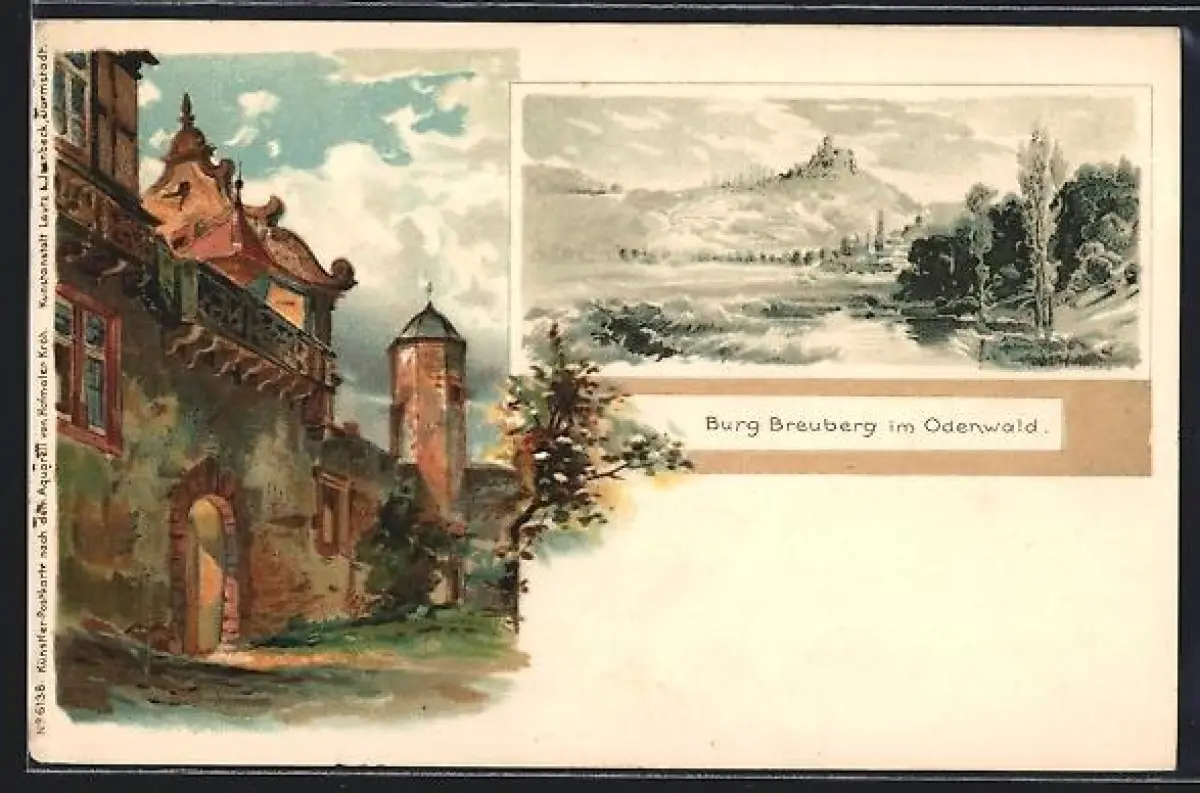 Lithographie Breuberg im Odenwald, Burg Breuberg