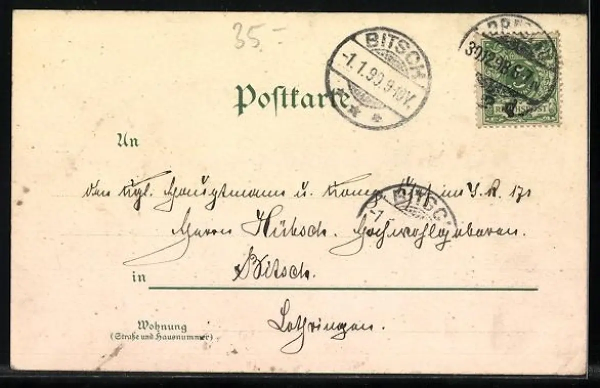 gelaufen 1898, Eckknick unten li., guter Zustand