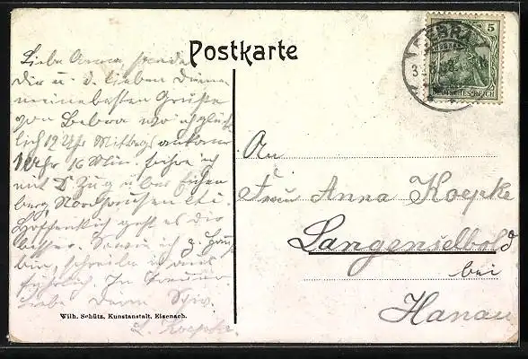 gelaufen 1908, Eckknicke oben, guter Zustand