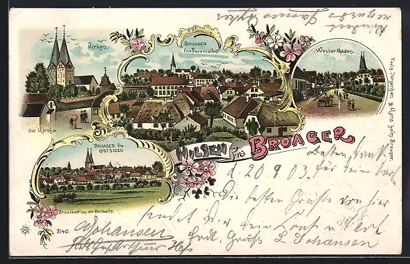Lithographie Broager, Wester Gaden, Kirken, fra Savemollen