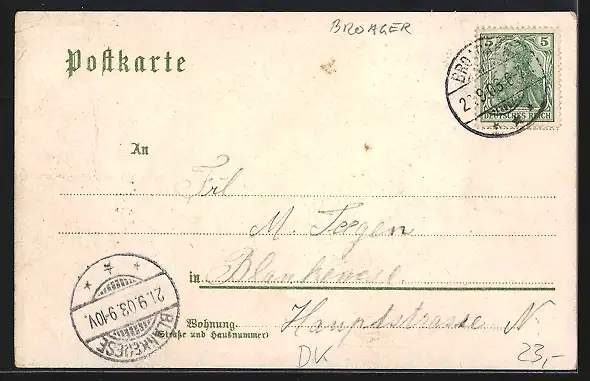 gelaufen 1903, Eckknicke li. und oben re., guter Zustand