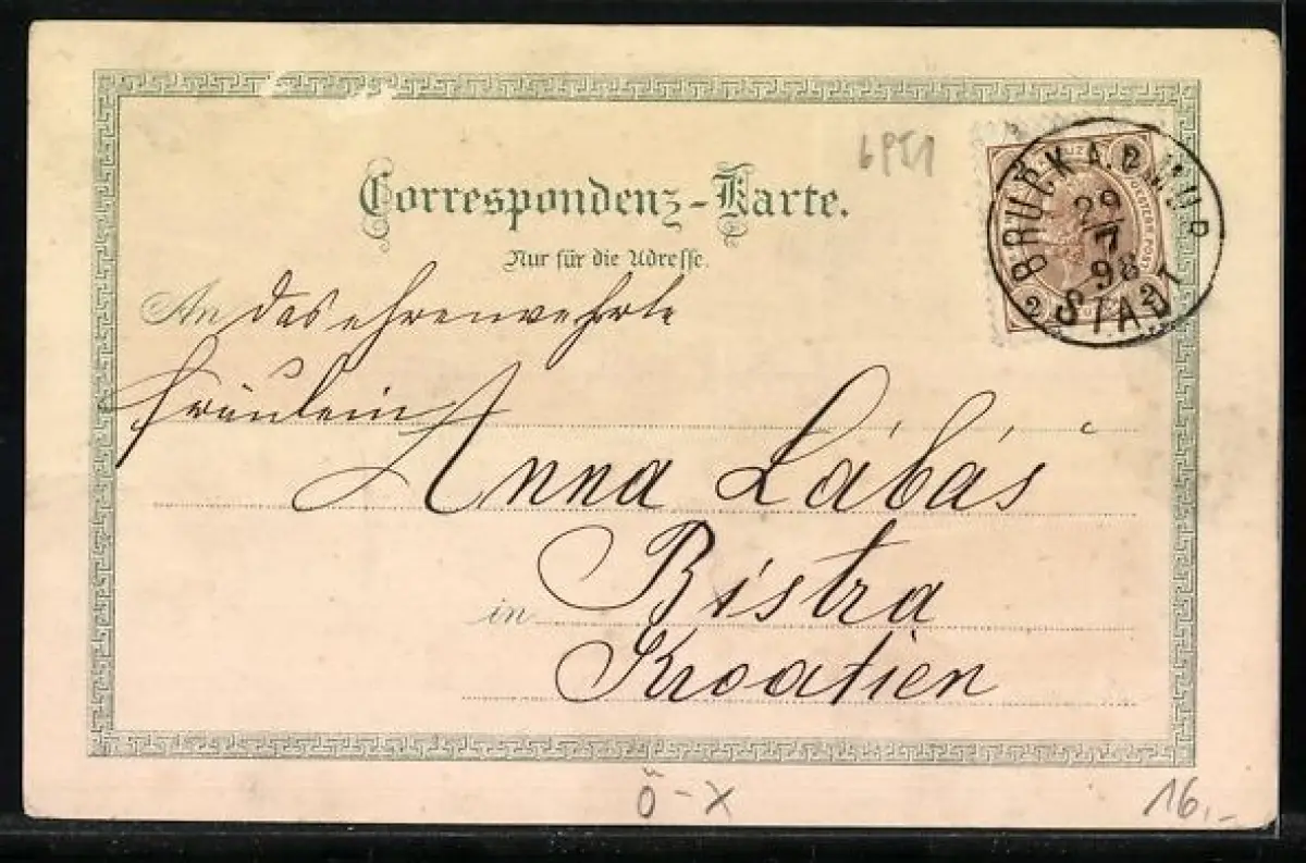 gelaufen 1898, rückseitig Oberflächenschaden, Eckknick re. oben, guter Zustand